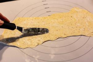 • Danach einrollen zu einer Schnecke formen auf dem Backblech. Die Ensaimadas dann mit einem Küchentuch abdecken und 12 Stunden lang ruhen lassen.