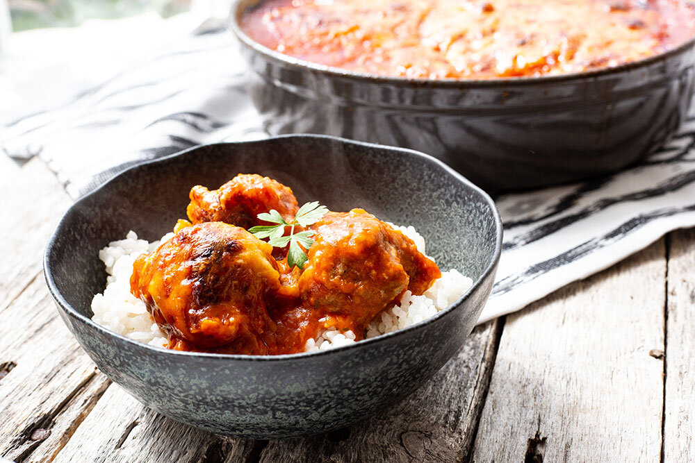 Keyword Albondigas, Auflauf, Hackbällchen, Reisgericht, Tomatensauce