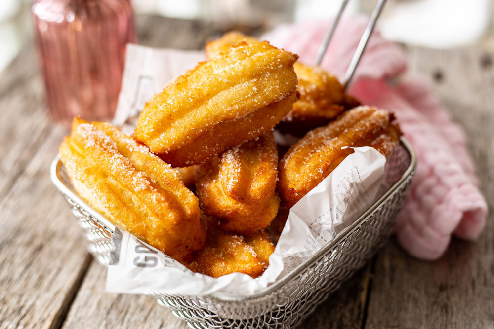 • Nach dem Frittieren die Bällchen bzw. Stangen in Zucker wenden – fertig.