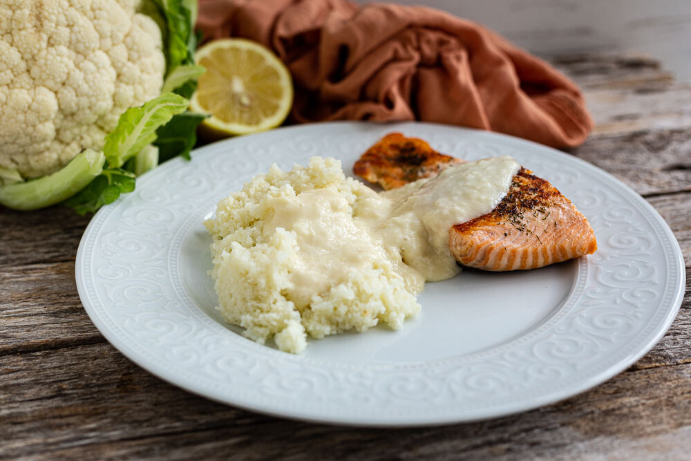 Keyword Blumenkohl, Blumenkohlreis, Lachs, Zitronensauce