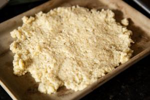 - „Teig“ auf den ggf. gefetteten Ofenzauberer geben (ca. 1 cm dick) und im vorgeheizten Backofen für 18-20 Min. bei 220°C O-/U-Hitze braun backen.