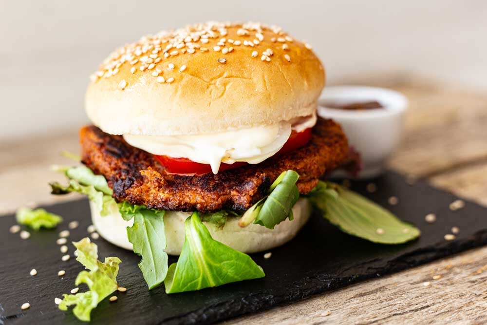 - Auf dem Grill oder in der Pfanne bei mittlerer Hitze grillen und mit Burger-Buns, Honig-Senf-Dip oder Aioli ohne Ei, Currywurst-Sauce, Salat und Tomate garnieren.