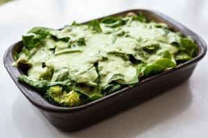 Brokkoli-Spinat-Auflauf mit Kartoffeln und Champignons mit dem Thermomix und der Ofenhexe von The Pampered Chef