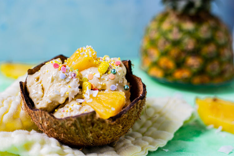 Piña-Colada-Eis mit Proteinpulver im Thermomix