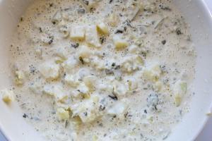 ... von ca. 1 x 1 cm schneiden und in eine große Schüssel geben.