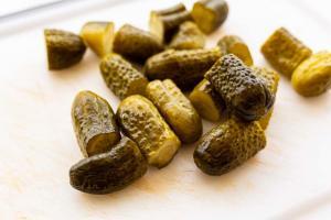 Gurken in 3-4 cm Stücken hinzufügen und 3 Sek. / Stufe 5 zerkleinern.